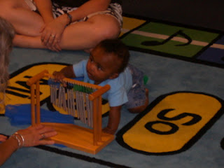 Then we went to music class. We love music class and I need to register for the fall semester today while I'm thinking about it. Daddy came to music class today to help take pictures and that made this class even more fun for Deacon!